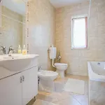 A 2 fürdőszobás villa magába foglal egy fürdőszobát bidével, fürdőkáddal és külön WC-vel. Hajszárító is biztosított az ön kényelméért.